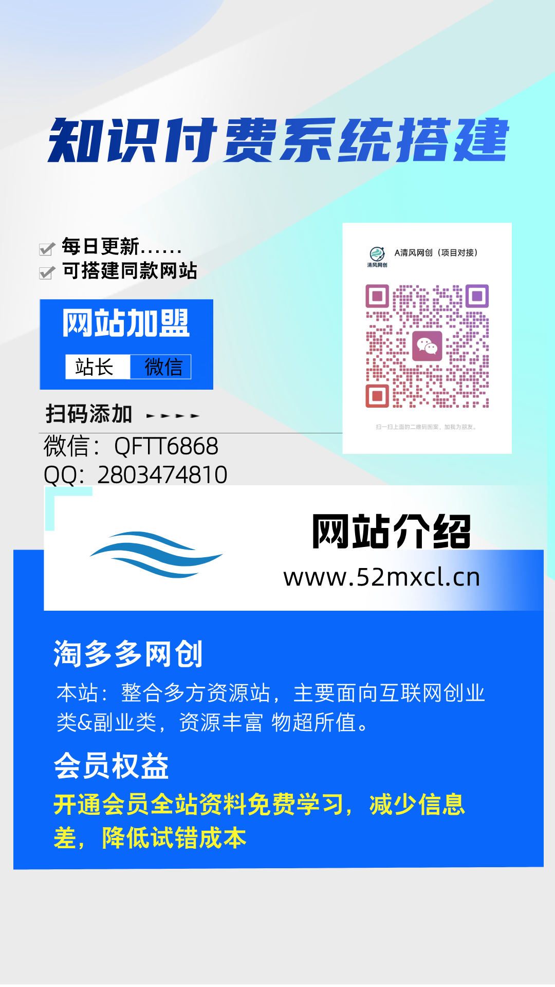加盟淘多多网创,加盟搭建同款知识付费资源网站,实现长期稳定被动收入~
